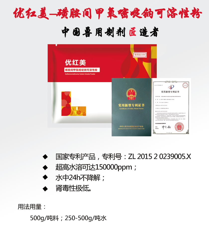 名稱(chēng):優(yōu)紅美-磺胺間甲氧嘧啶鈉可溶性粉